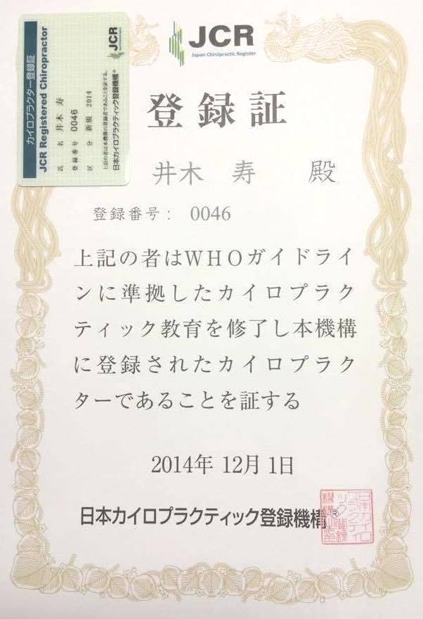 ・日本カイロプラクティック登録機構(JCR) 登録番号:0046